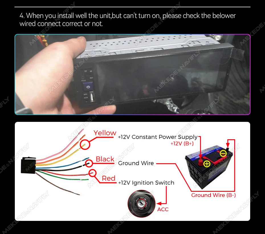 *3.Installation : nous suggérons aux clients d'emmener les produits dans un magasin de services automobiles pour trouver une personne professionnelle pour les installer, car une mauvaise installation peut endommager l'appareil.Si vous rencontrez des problèmes avec l'appareil, veuillez nous contacter avant d'ouvrir un litige, nous vous fournirons une bonne solution, la plupart des litiges sont causés par une mauvaise utilisation ou une mauvaise installation.