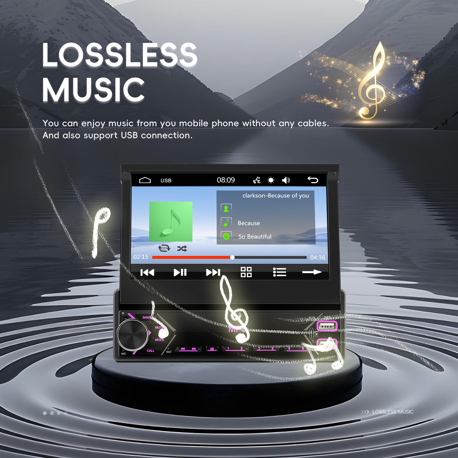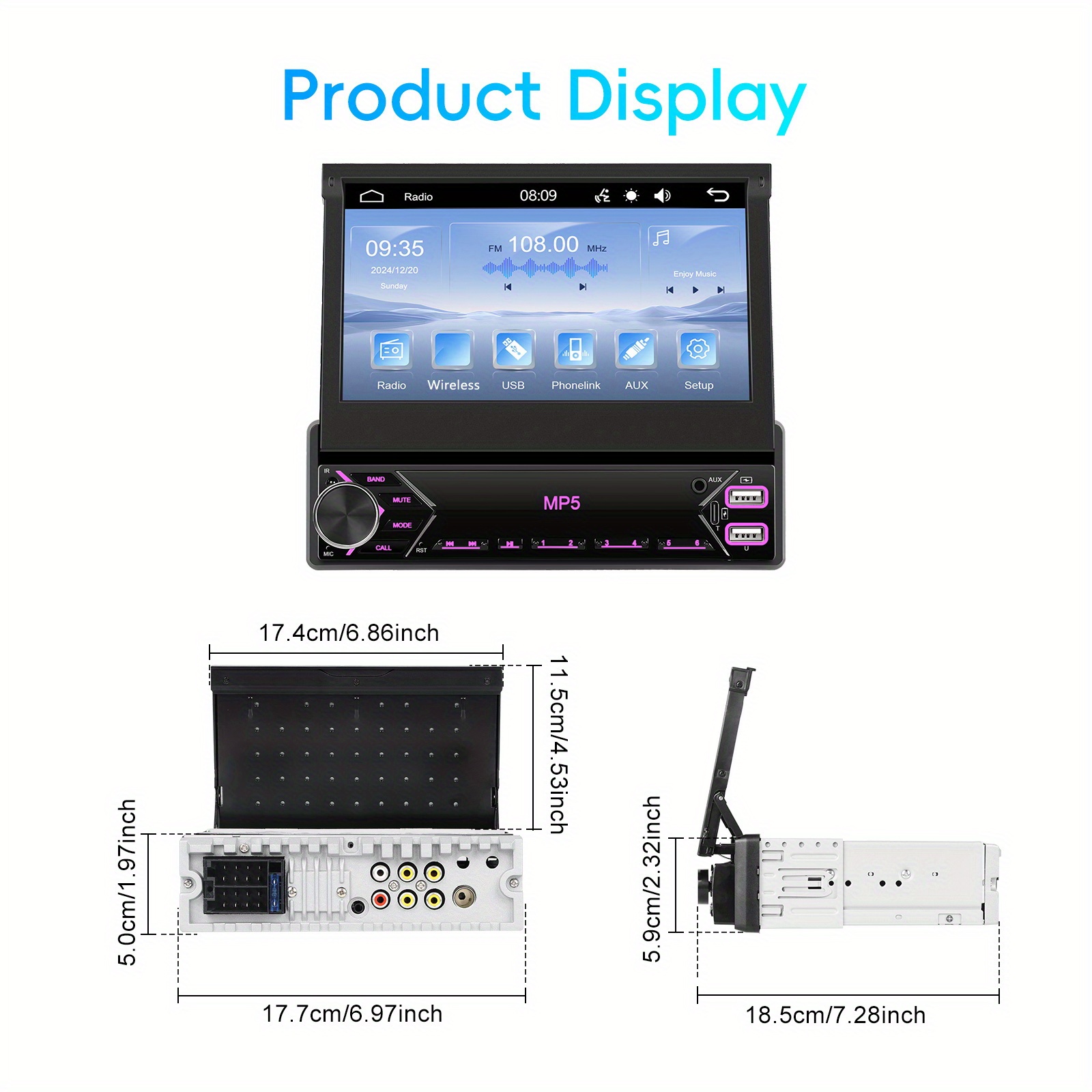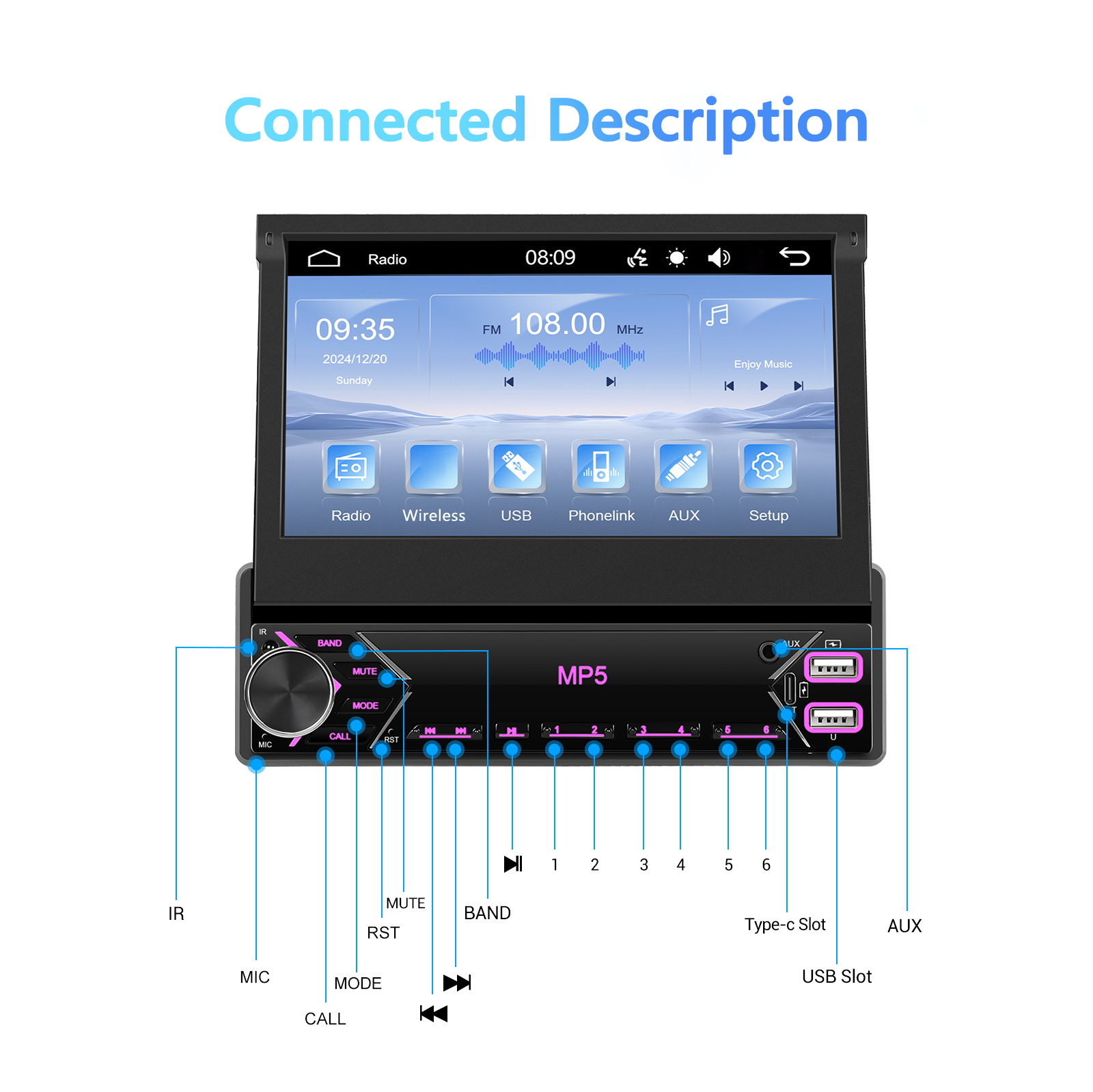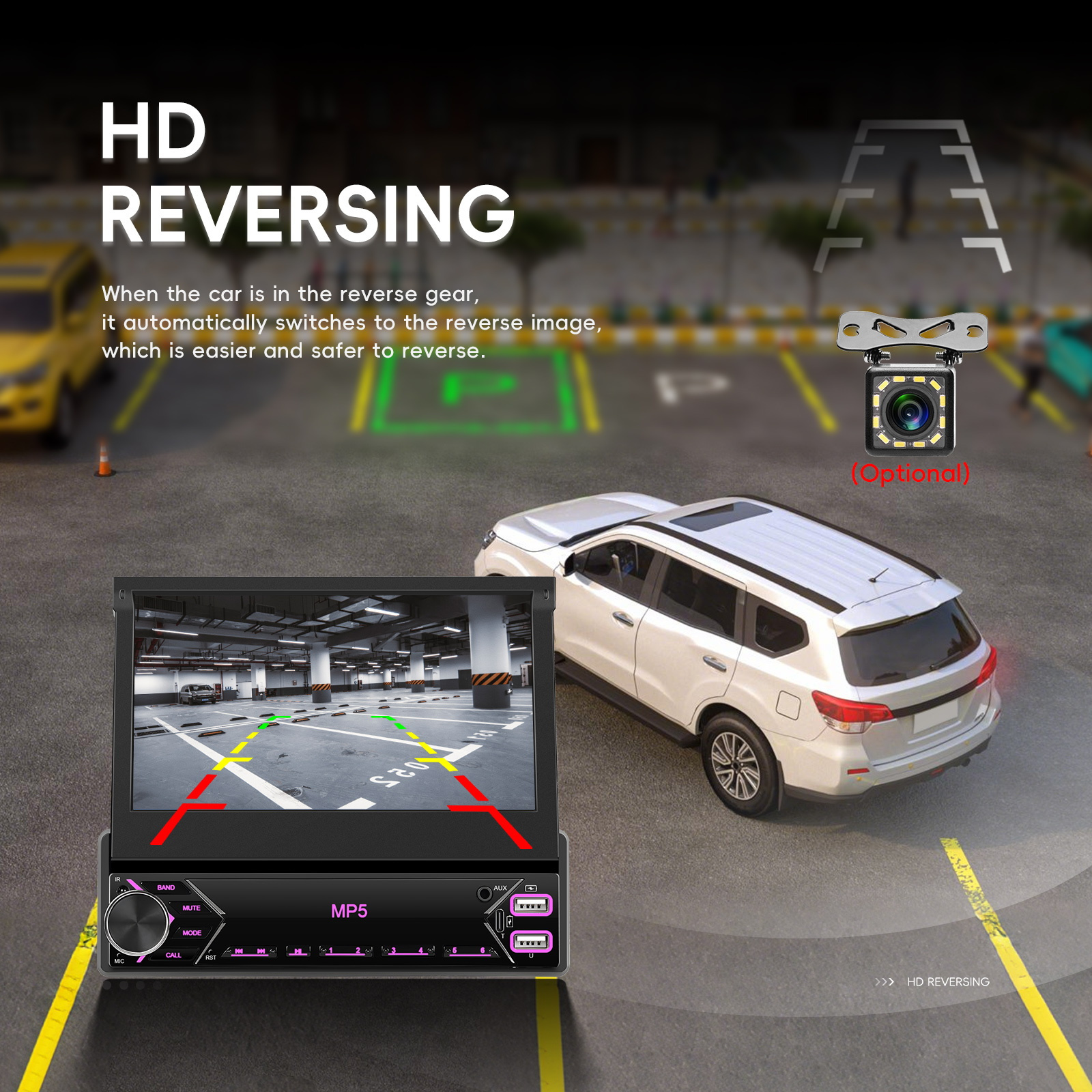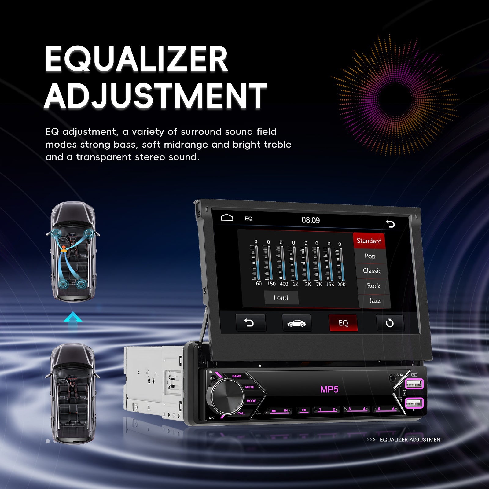 7-Inch EQ 1080P HD Retractable Display Car Stereo with microphones(free), Mirror Link, USB & AUX Inputs, FM Radio, SWC Colorful Backlight Calendar Viewing Calculator Car MP5 Car Multimedia Player Autoradio Connection Manual T