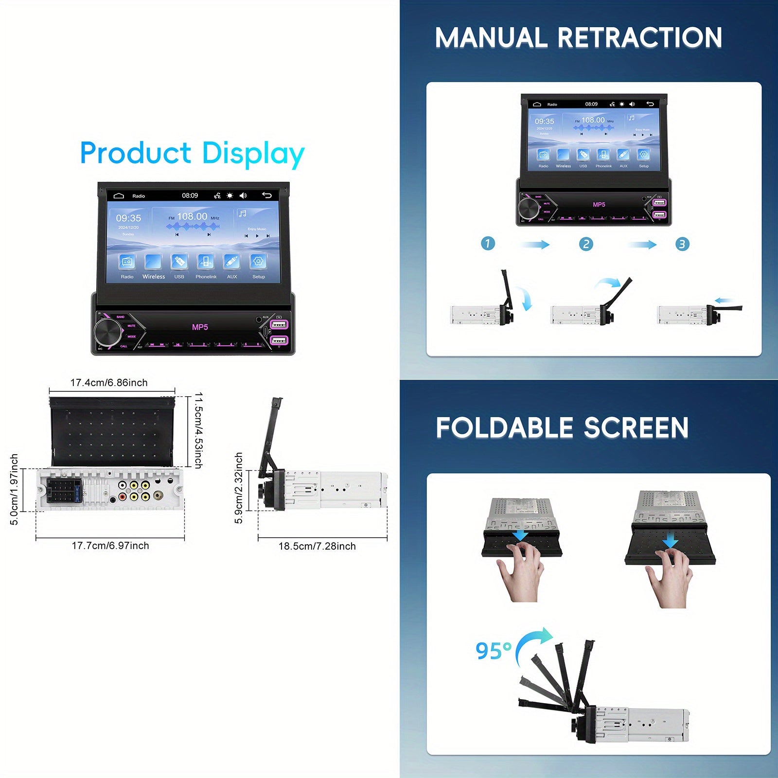 ●Retractable screen: Retractable screen offers flexibility in adjusting the display for optimal viewing angles or when it's not in use. This feature protects the screen when not needed and provides a clutter-free dashboard, enhancing both functionality and aesthetics.