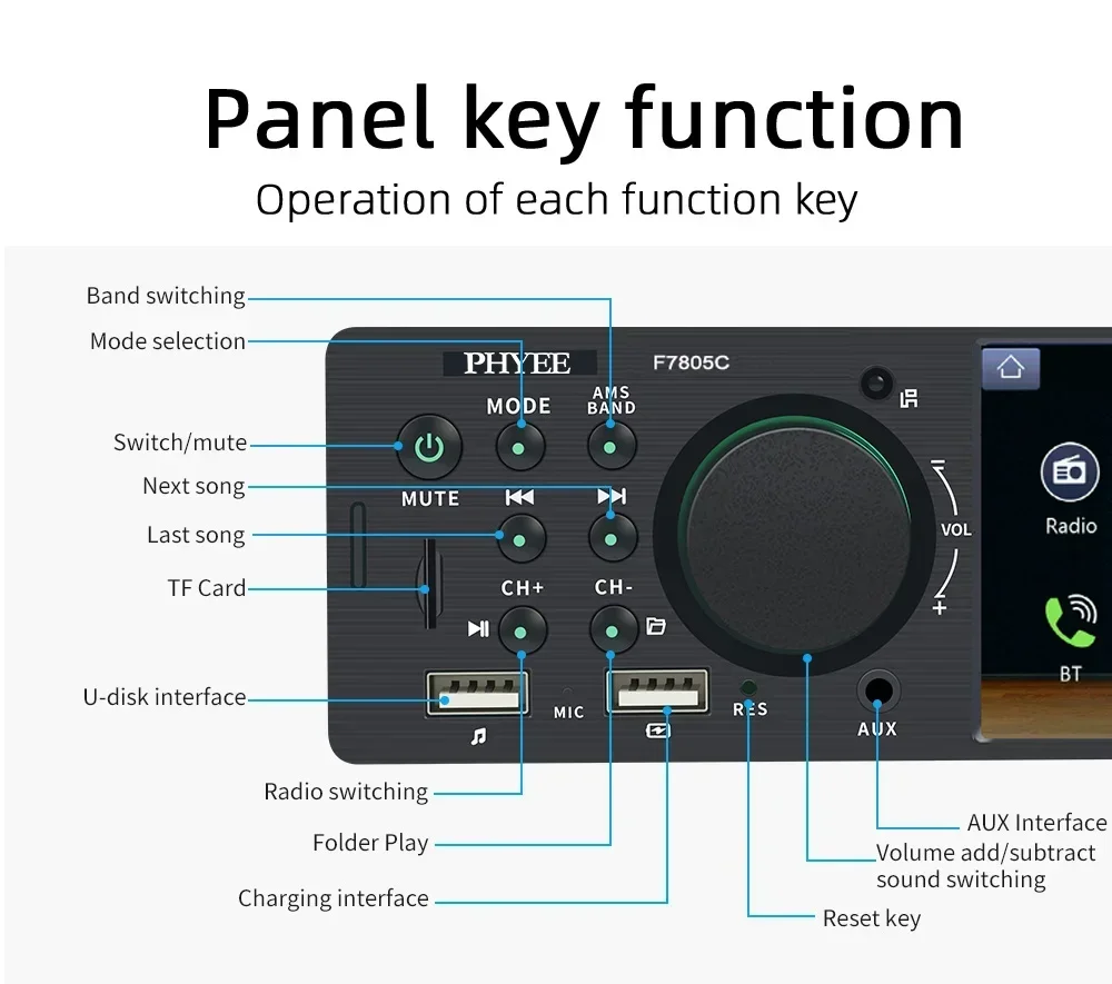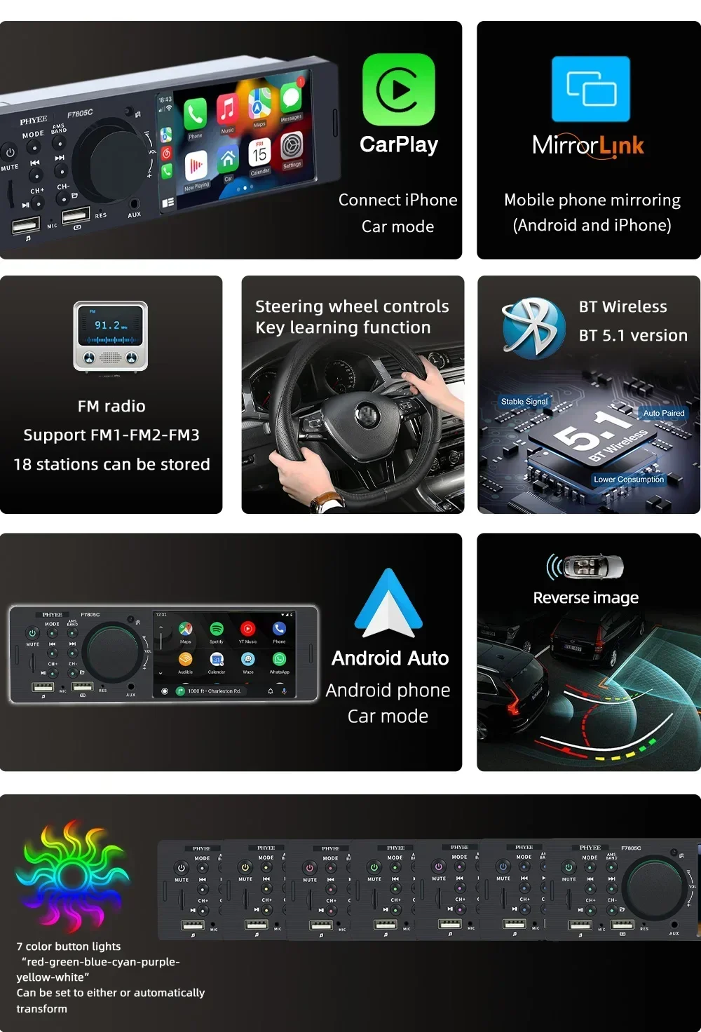 * Autoradio 1 din 4 pouces CarPlay F7805C