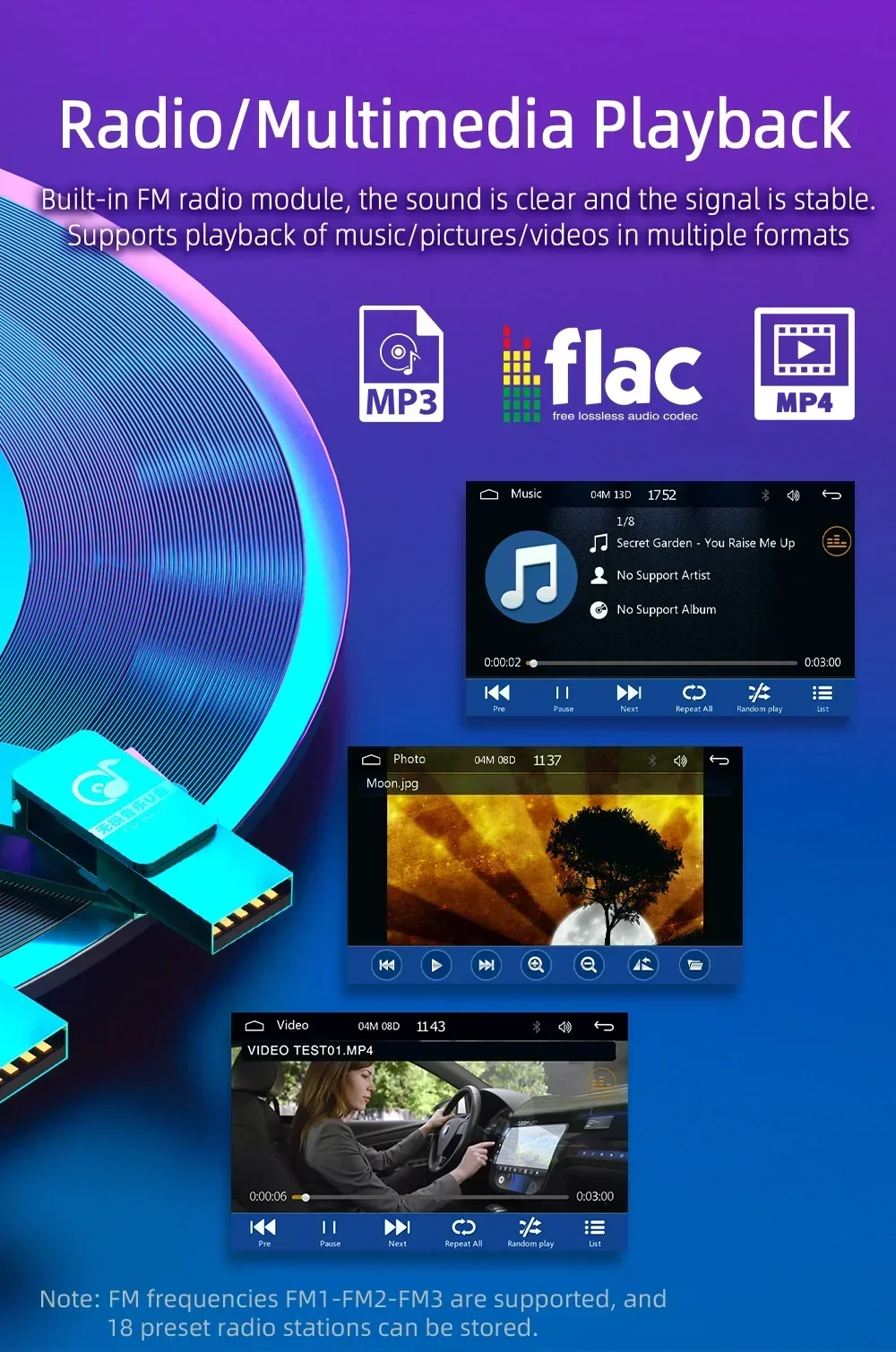 Autoradio CarPlay, Bluetooth, Android Auto, Lecteur MP5, Mains Libres, A2DP, USB, Stéréo, Système Audio, Limitation, Unité Principale, F7805C, 1 Din, 4"