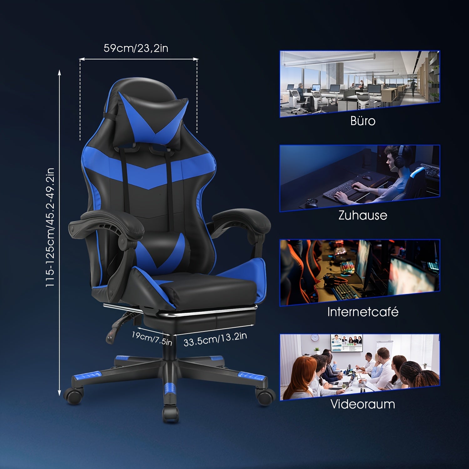 cette chaise ergonomique est idéale pour jouer, travailler au bureau ou étudier. Son esthétique moderne noire et bleue s'intègre parfaitement à tout environnement de jeu, bureau à domicile ou espace de travail.