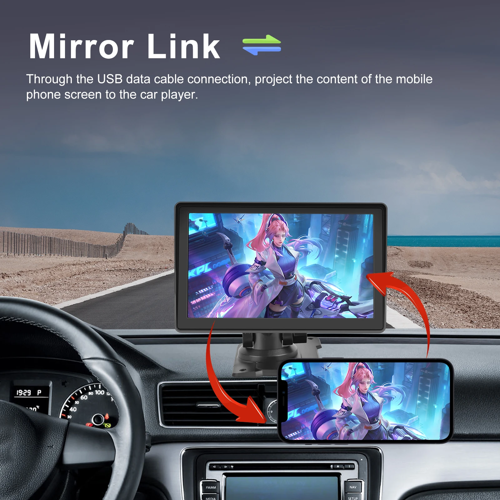 Hikity-Lecteur MP5 sans fil universel pour voiture, écran Carplay, radio FM, récepteur, prise en charge de la capture d'écran de vue arrière, Android Auto, 7 pouces