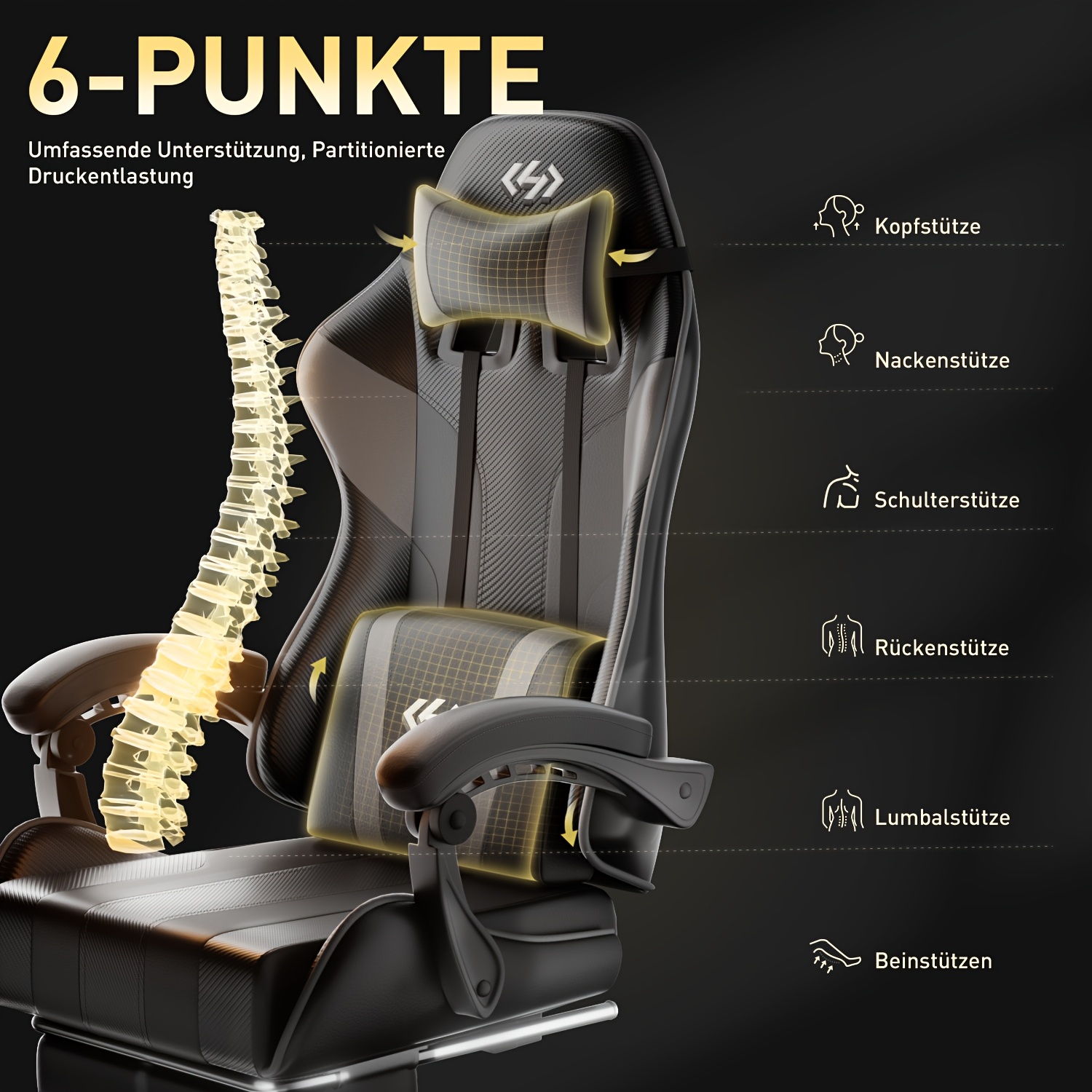HLDIRECT Gaming Chair, Ergonomic Gaming Chair with Pocket Spring Cushion, Racing Gamer Chair with Footrest, Lumbar Support, Adjustable Office Chair 150kg Load Capacity, PC Chair, Gaming Recliner, Gaming Setup Accessories, Gam