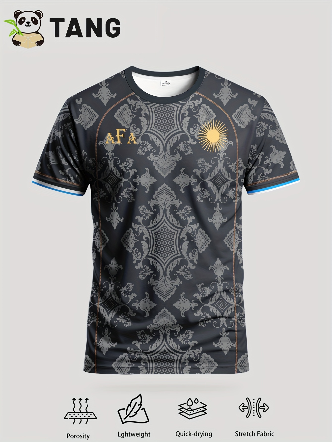 Men'S Youth Soccer Jersey & Comfortable Breathable Sports T-Shirt - Versatile Casual Training Shirt with Geometric Pattern, Dark Blue & Orange Accents, Perfect for Outdoor Play, Competition, and Casual Wear, Competition Appar