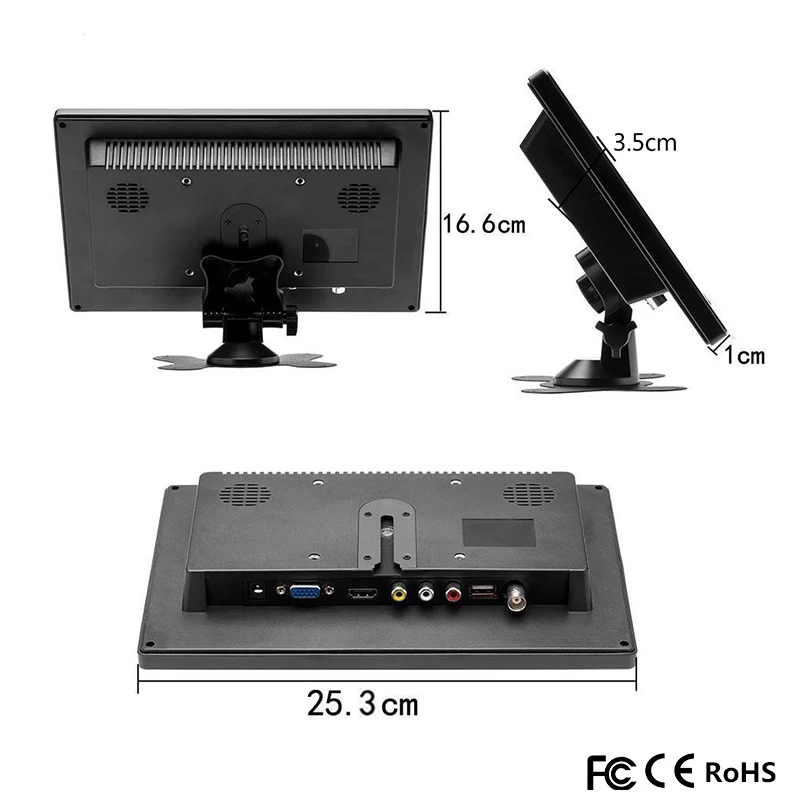 Podofo 10.1 ''moniteur de voiture TFT LCD HD écran numérique HDMI/VGA/AV/USB/SD entrée vidéo PC/TV/lecteur DVD affichage moniteur de sécurité